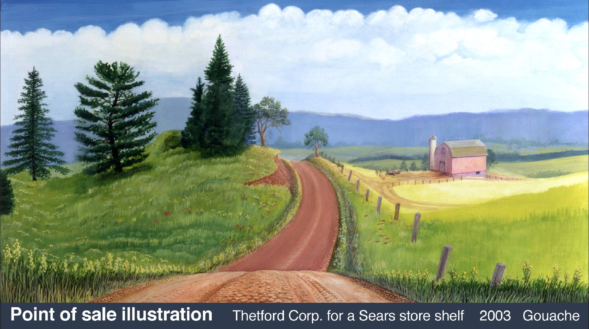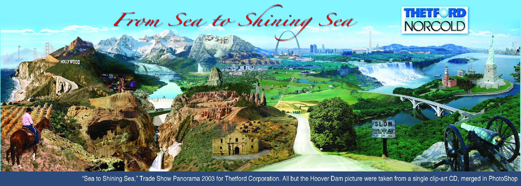 The last item everyone agreed was pretty special. They handed me a disk of American scene stock photos and an assignment: create an 8-foot panorama of America with only these photos and one by J.P. DiMaggio (Hoover Dam). It was fun: 80 layers in two Photoshop files.