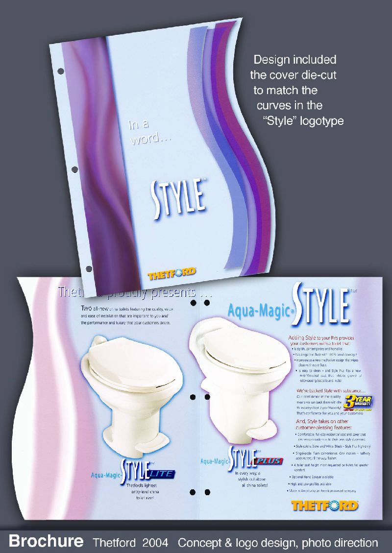 Thetford, following the in-house trend, hired one of my former staff, and then me, to handle its substantial marketing and advertising projects. I worked freelance for them until 2000, then in-house until 2013. The gallery below reflects the most fun work I did for them.